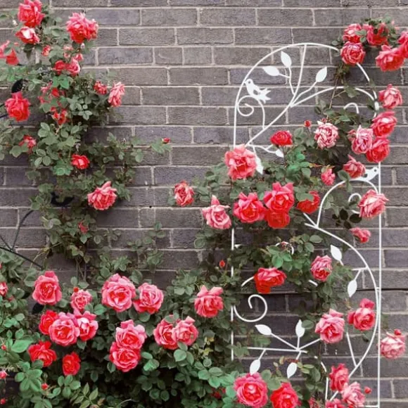 Förbättra din trädgård med detta dekorativa spaljé, perfekt för att stödja klätterväxter som murgröna, klematis och rosor. Med en utsmyckad design av fåglar och rankor smälter den sömlöst in i den naturliga omgivningen samtidigt som den ger stabilt stöd. Den robusta järnkonstruktionen garanterar hållbarhet och enkel installation i rabatter eller mot väggar.