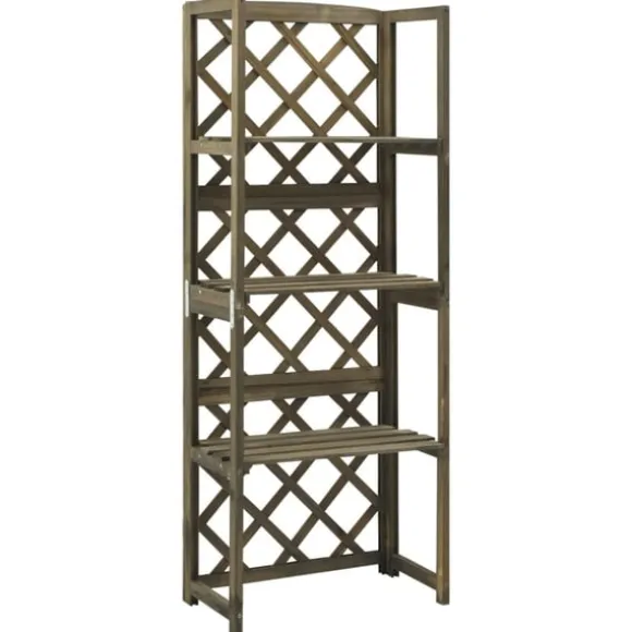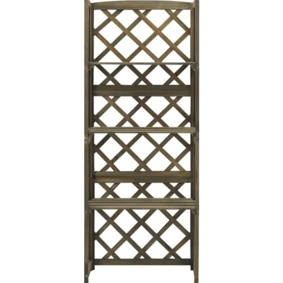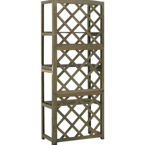 Denna spaljé är tillverkad i massivt granträ, vilket gör den stadig och lämplig för utomhusbruk. Den är ett bra stöd för rosor, murgröna och andra klätterväxter. Växtstödet har 3 hyllor där det kan stå krukväxter och dekorationer.