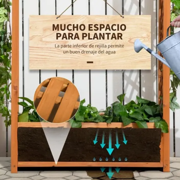 - Planteringslåda i naturträ med båge och två spaljéer