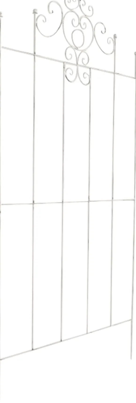 Spaljé Paula – Den idealiska klätterhjälpen Spaljén Paula i rustik lantlig stil övertygar med sin klassiska design och konstnärliga dekorationer. Den är perfekt för trädgårdsdesign och sätter stilfullt dina växter i rampljuset. Även utan växter är den ett riktigt blickfång. Mått: Bredd: 85,5 cm Höjd: 170 cm Djup: 2 cm Fothöjd: 20 cm Stångtjocklek: 1,5 cm Material: Metall Specialfunktioner: Med snygga dekorationer I lantlig stil Fristående, Spaljé Paula – Det idealiska klätterhjälpmedlet