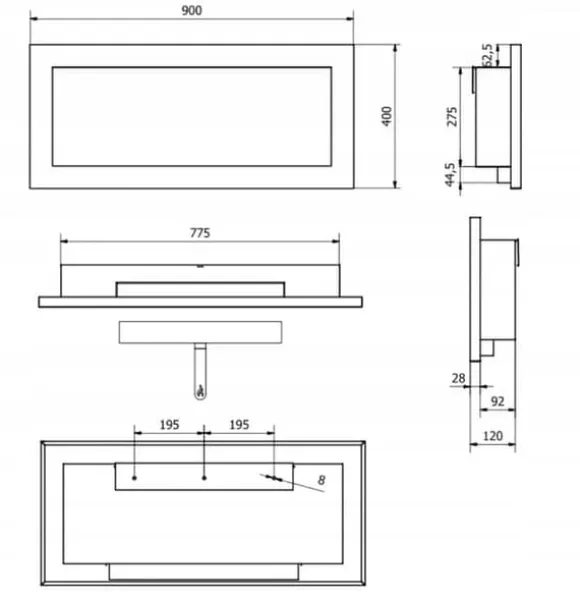 Det totala djupet på den erbjudna biokaminen är endast 120 mm.