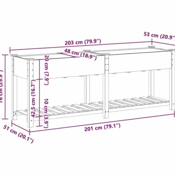 - Stabil konstruktion: Tillverkad av högkvalitativt trä, är denna planteringslåda robust och tål påfrestningar. Träets naturliga utseende ger en extra charm och gör den till ett bra tillskott i din inredning.