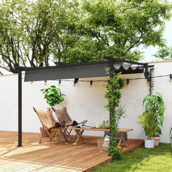 – Stabil stålram: Pergolans ram av pulverlackerat, rostfritt metall garanterar långvarig stabilitet och säkerhet