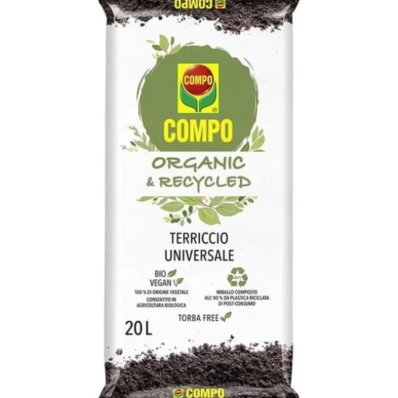Jord för odling av grönsaker, frukter, aromatiska och prydnadsväxter, för växter odlade i krukor på balkongen eller i öppna jordar, förpackning bestående av 80% återvunnen plast. Universell ekologisk jord, tillåten i ekologiskt jordbruk, 100% växtbaserad. Rik blandning av organiska komponenter för att bidra till växtutvecklingen och säkerställa en harmonisk tillväxt, 100% växtbaserade komponenter, torvfria och kommer från återvinningsprocesser. ORGANISK & ÅTERVUNNEN, tillåten i ekologiskt jordbruk, förpackning bestående av 80% post-konsumerad återvunnen plast. Användning: 1: Fyll krukan med jorden, 2: Placera växten i krukan, 3: Täck de tomma utrymmena vid basen med jord och tryck försiktigt, 4: Vattna rikligt. Säcken innehåller 20 liter.