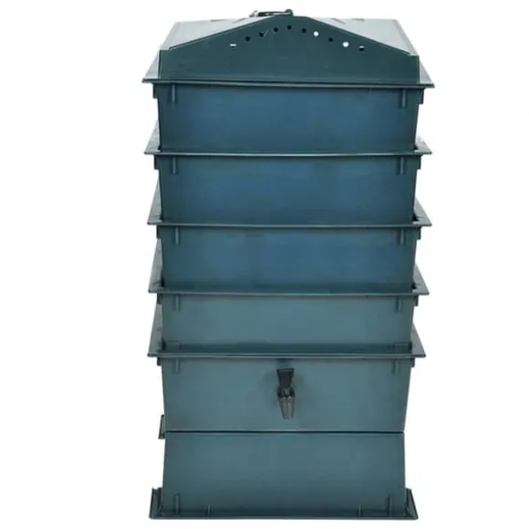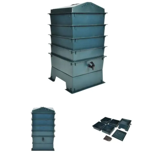 Kompostering med maskar gör att du kan förvandla ditt köksavfall, papper och kartong till näringsrik jord för dina växter. Med vår masskompost blir hela processen både snabbare och enklare. Tillför helt enkelt en handfull maskar till ditt organiska avfall i den nedersta behållaren. Maskarna kommer börja processa maten. När den nedersta brickan är full, lägg till nästa. Maskarna migrerar uppåt till den nyaste matkällan och lämnar efter sig en nedre bricka full av näringsrik kompost. Allteftersom avfallet bryts ner, filtreras fukten genom systemet och tar med sig näringsrika partiklar. Detta gör det möjligt att tappa organisk flytande näring direkt från tappen.