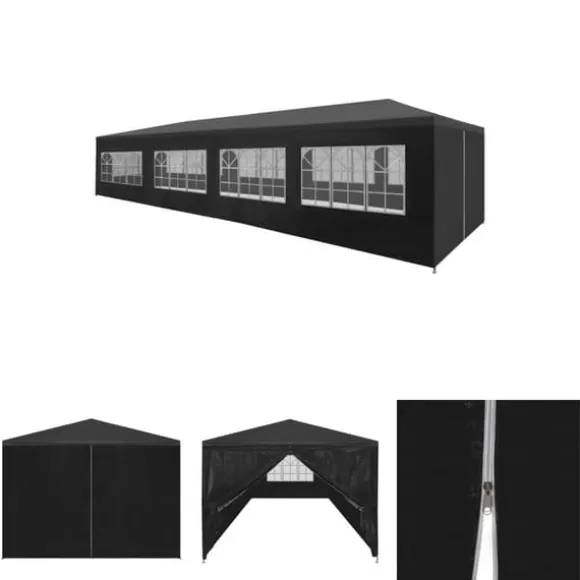 Partytältet är tillverkat i UV- och vattenbeständigt polyetenmaterial och är därmed väldigt praktiskt för utomhusbruk. Ramen är tillverkad i rostbeständigt stål som gör tältet stadigt och hållbart. Partytältet har sidopaneler, vardera med dekorativa fönster samt 1 dörrpanel med dragkedja för enkel entré. Partytältet är lätt att montera.