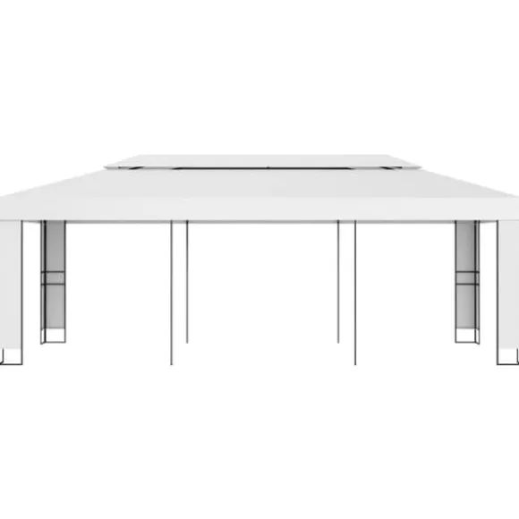 Paviljongen är tillverkad i pulverlackerat stål. Därför är den väldigt stadig och hållbar. Vår paviljong har dubbla tak. Dessutom är överdraget tillverkat i 100 % polyester med PA-beläggning som är väderbeständigt. Du kan ta av det för tvätt eller förvaring när det inte används.