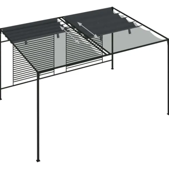 Denna paviljong har en massiv stålkonstruktion som gör den stark och stabil för utomhusbruk. Det infällbara taket skyddar mot regn och den gassande solen så att du kan ha det trevligt utomhus utan att oroa dig.
