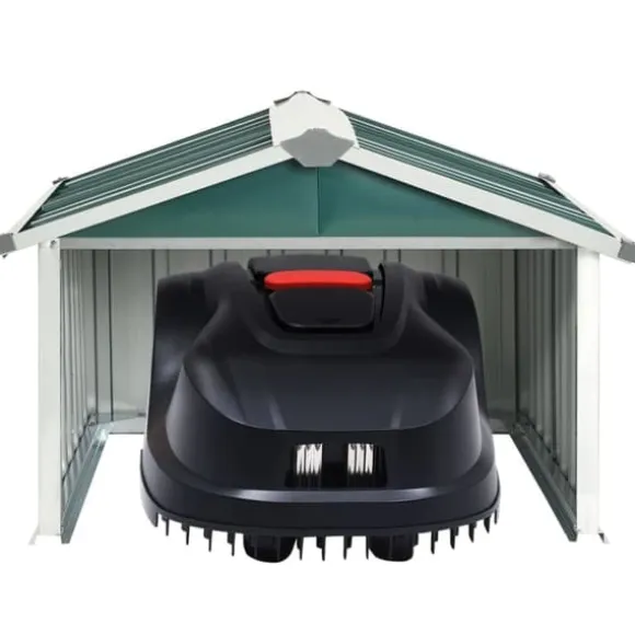 Tack vare konstruktionen av galvaniserat stål är skjulet robust och stabilt. Laddstationen kan placeras inuti garaget så att roboten går in varje gång den måste laddas. Robotgräsklipparen går in automatiskt och skyddas innan den går ut igen för att klippa gräset.