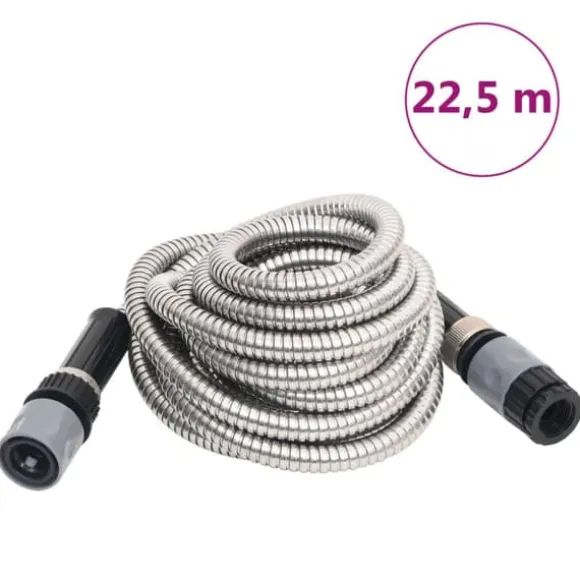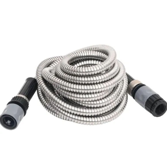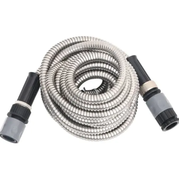 Denna trädgårdsslang i rostfritt stål med sprutmunstycke är perfekt för trädgårdsbevattning och gör det enkelt att vattna växter.