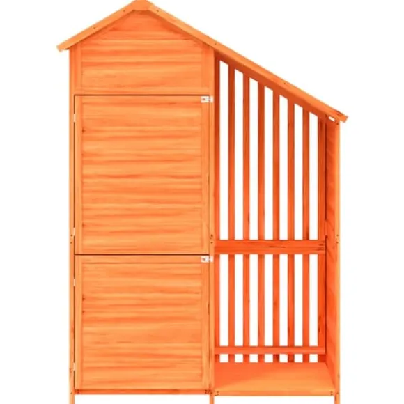 - Stort och organiserat utrymme: Denna träbod är perfekt utformad för olika trädgårdsredskap, gräsklippningsutrustning, pooltillbehör och redskap som kvastar, krattor etc.