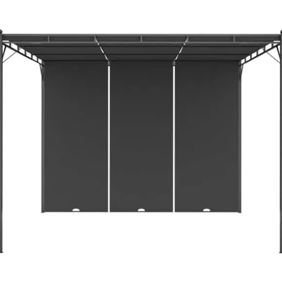 Den har en konstruktion i pulverlackerat stål, som gör ramen hållbar och robust. Soltaket i tyg och sidogardinen skyddar dig mot solen, så att du kan njuta av bättre komfort under dina tillställningar. Dessutom är trädgårdspaviljongen väldigt enkel att montera.