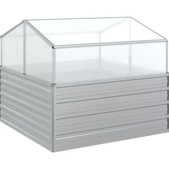 Upphöjd odlingslåda med växthus 100x100x85 cm silver Denna upphöjda odlingslåda i galvaniserat stål med växthus är mycket lämplig för att odla unga plantor. Den släpper in det nödvändiga ljuset och skyddar samtidigt växterna underifrån mot dåligt väder. Upphöjd odlingslåda med växthus 100x100x85 cm silver (1x) Din beställning kommer att levereras i ett paket. Så snart din beställning har packats får du omedelbart din leveransinformation från oss. Vi hoppas att du blir nöjd med ditt köp.