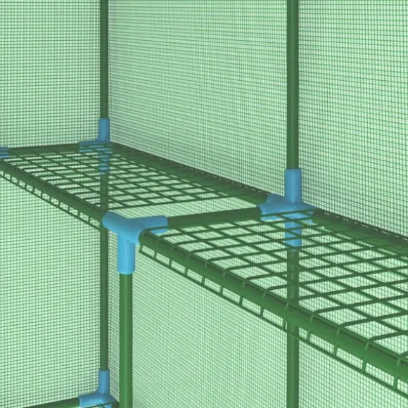 Detta växthus blir en bra lösning för att skydda dina plantor mot vind, regn, sol och skada från fåglar. Växthuset är tillverkat av 170g/m² PE-nättyg som är 25% tyngre än många konkurrenters standard nättyg. Växthuset har en stadig och rostfri galvaniserad stålram för extra stabilitet. Det är också utrustat med hyllor för att organisera dina växter; och en dörr för bra ventilation och enkel åtkomst.
