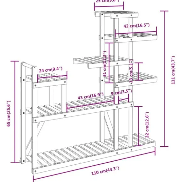 - Slitstarkt granträ: Detta växtställ är tillverkat av granträ, som är robust och hållbart, vilket garanterar många års användning. Tack vare dess vackra hantverk har detta växtställ utmärkt fuktsäker förmåga och väderbeständighet.