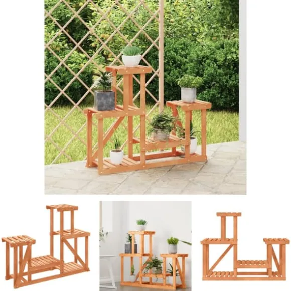 Detta växtställ i trä är ett bra val att ställa och visa upp dina växter och andra dekorativa föremål på.