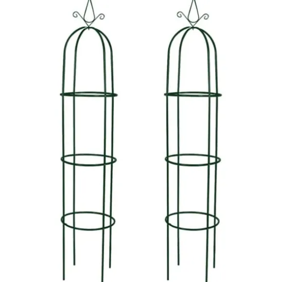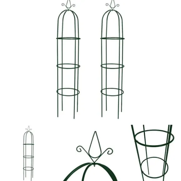 Denna uppsättning växtstöd består utav två stycken spaljéer i form av en obelisk, som båda är utmärkta för att utsmycka din trädgård. De är tillverkade i hållbart järn, som gör dessa växtstöd väderbeständiga och tillräckligt starka för att stödja de mest kraftfulla klätterväxterna. Du kan själv välja hur djupt ner i marken de ska sitta för bästa stabilitet.