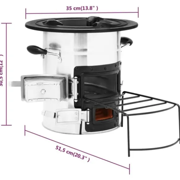 - Utdragbar hylla: Campingspisen är utformad med en förlängd hylla som är lämplig för att placera ved och hålla sig borta från högtemperaturkaminen för att säkerställa säkerheten.