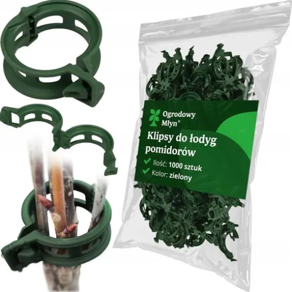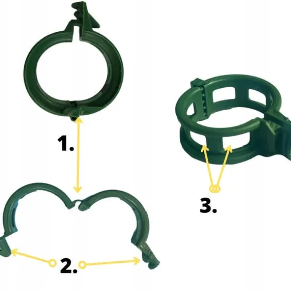 Klipset används för att fästa stjälken vid snöret, vilket säkerställer vertikal tillväxt.
