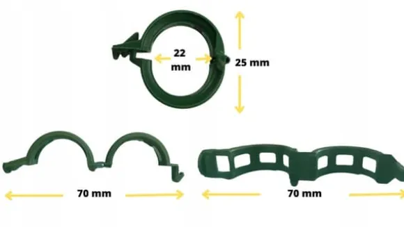 Plastklämmor med en diameter på 22 mm är perfekta för att fästa växter på pålar och stödstolpar.