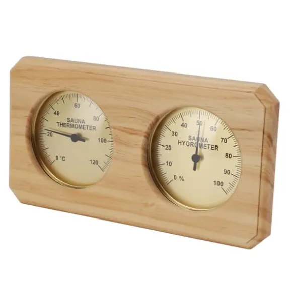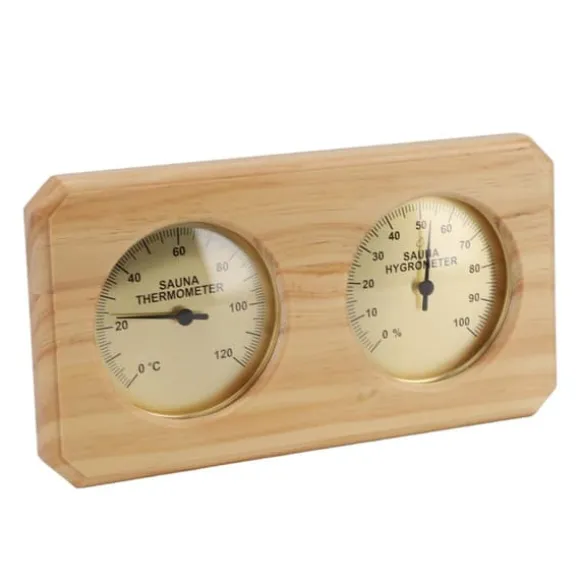 1, visuell skönhet: Den gyllene träramen och det massiva trämaterialet ger 2 i 1 bastutermometern och hygrometern en unik ädel och fashionabel atmosfär, vilket ger basturummet konstnärlig charm.
