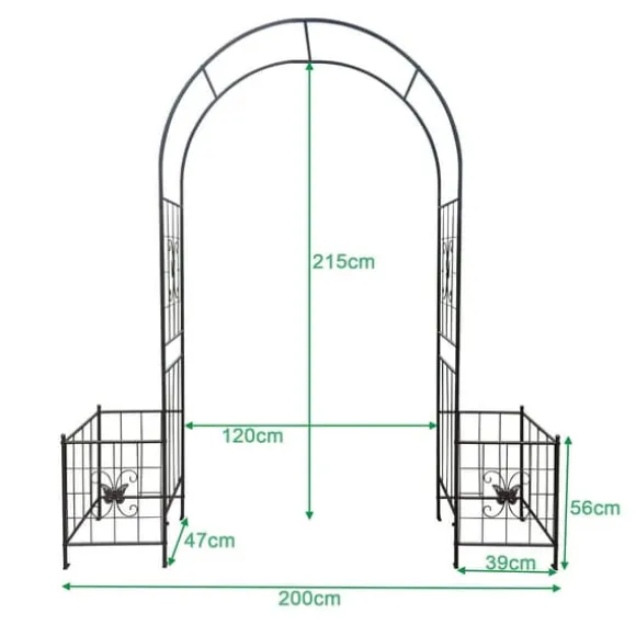 Stabil konstruktion – Den förstärkta ramen med breda fötter och extra pilar säkerställer att bågen står stadigt även vid vind. Perfekt för att bära både växter och dekorativa element.