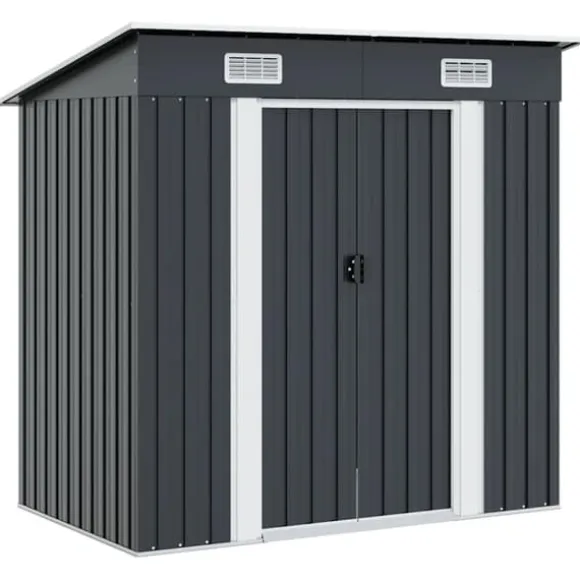 Detta förråd i metall blir ett utmärkt tillskott till alla bakgårdar, gräsmattor eller trädgårdsområden. Det är perfekt för förvaring av trädgårdsredskap, gräsmatteutrustning, hushållsartiklar och mycket mer!