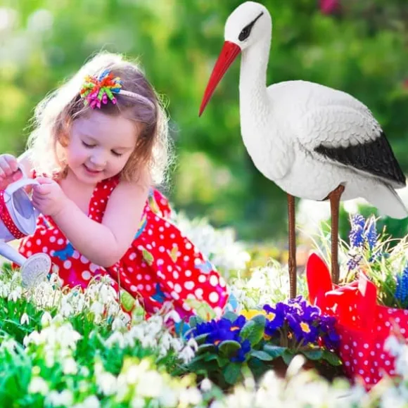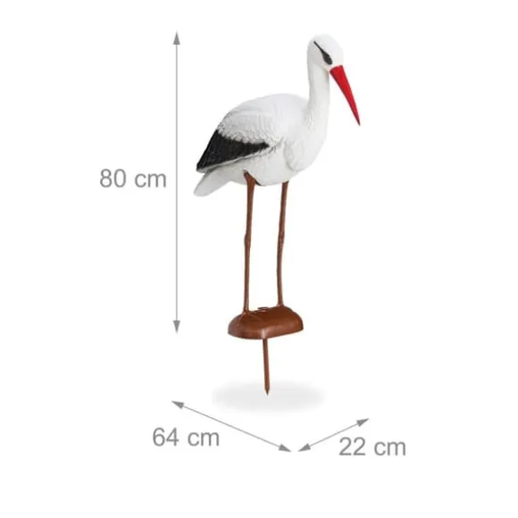 Denna trädgårdsfigur i form av en stork är en charmig dekorativ detalj för din trädgård, terrass eller balkong, utformad för att likna en riktig stork med en detaljerad och naturlig finish. Tillverkad av väderbeständig plast, enkel att fästa i marken med den medföljande markpinnen och kan användas för att annonsera ett födelse eller skydda dammfiskar från hägrar. Dess iögonfallande design gör den till ett härligt tillskott i alla utomhusmiljöer.