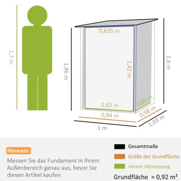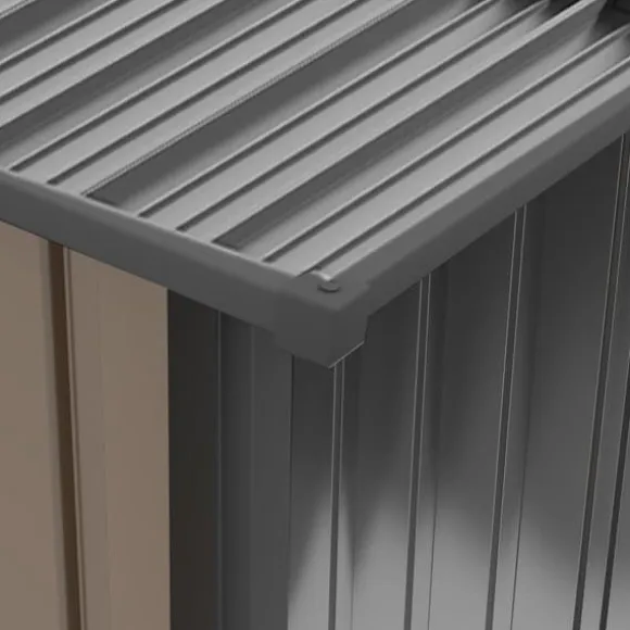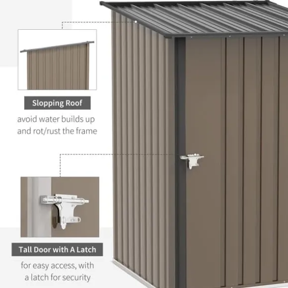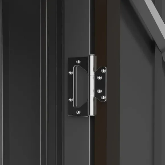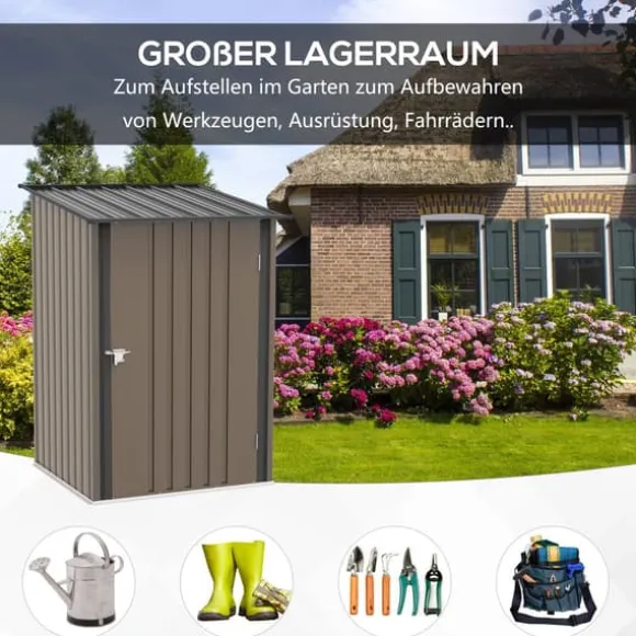 Detta kompakta trädgårdsförråd i stål erbjuder en säker och vattentät förvaringslösning för trädgårdsredskap, gräsmatteskötselartiklar och pooltillbehör. Dess lutande tak förhindrar vattenansamling, och den låsbara dörren ger extra säkerhet, vilket gör det idealiskt för balkonger eller terrasser.