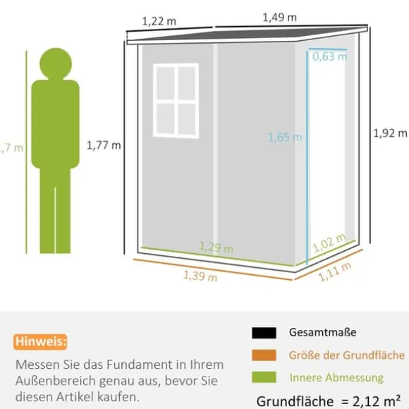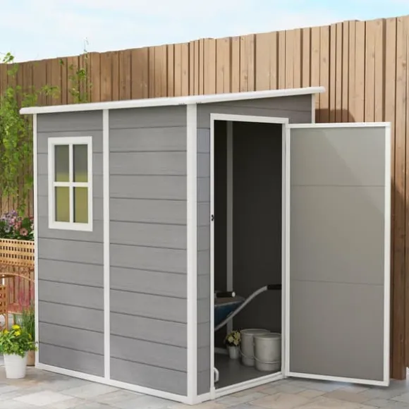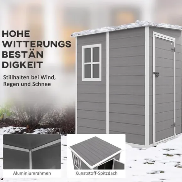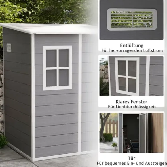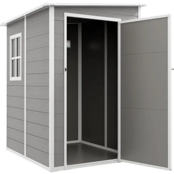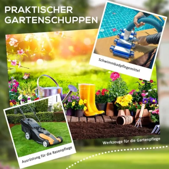 Detta trädgårdsförråd i aluminium erbjuder en säker och rymlig förvaringslösning för dina verktyg och utrustning, med en låsbar dörr och ventilation för frisk luft. Den hållbara designen med lutande tak förhindrar vattenansamling, vilket gör den idealisk för organisering i trädgården och skydd mot väder och vind.