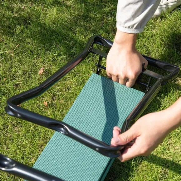 – SIT & KNÄBANK: Denna knäbank hjälper dig att återta din trädgård genom att erbjuda en stabil och bekväm position för personer med artrit. Den kan användas som sittplats när den står upprätt eller som knästol när den vänds upp och ner.