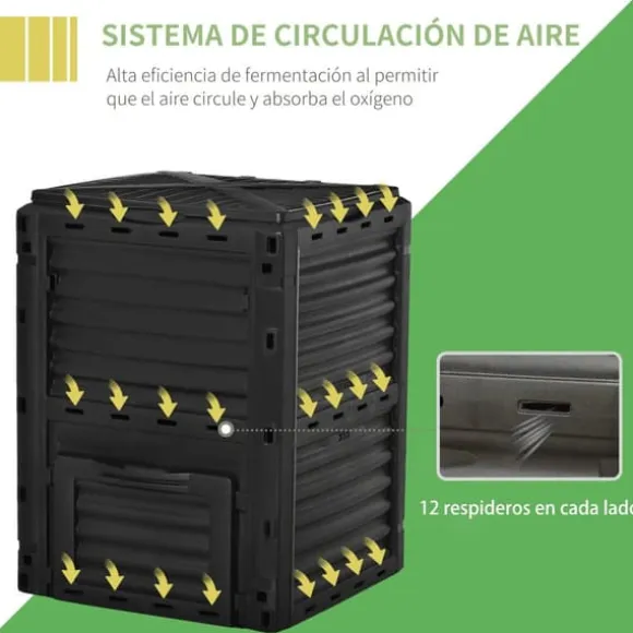 Effektiv kompost i PP-plast för näringsrik jordFörvandla köksrester och trädgårdsavfall till värdefull kompost med denna slitstarka kompostbehållare i PP-plast. Den har 300 L kapacitet, låsbar lockkonstruktion och en smidig nedre lucka för enkel uttagning – perfekt för rabatter, odlingslådor och prydnadsväxter.