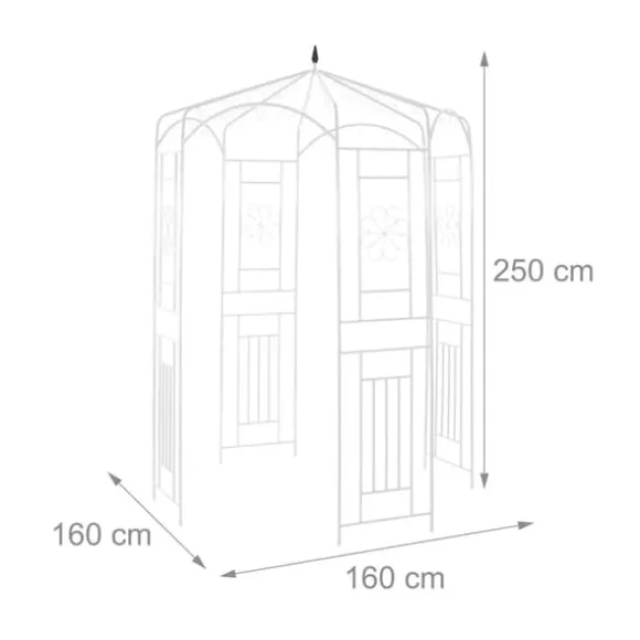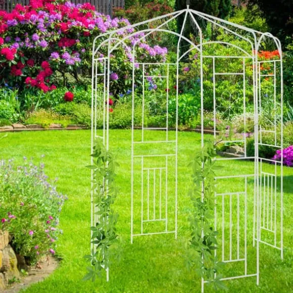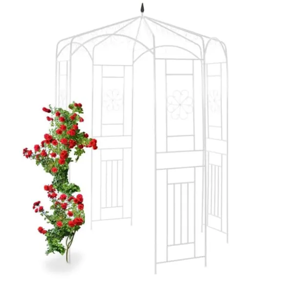 Skapa en charmig utomhusoas med detta romantiska rospaviljong i metall, perfekt för att stödja klätterväxter samtidigt som det erbjuder en skuggig, dekorativ plats i din trädgård. Den väderbeständiga, pulverlackerade ramen har eleganta blomornament och gör paviljongen till en slående fokuspunkt i alla utomhusmiljöer. Njut av både skönhet och funktionalitet när den ger stabilt växtstöd och en avkopplande plats att koppla av på.