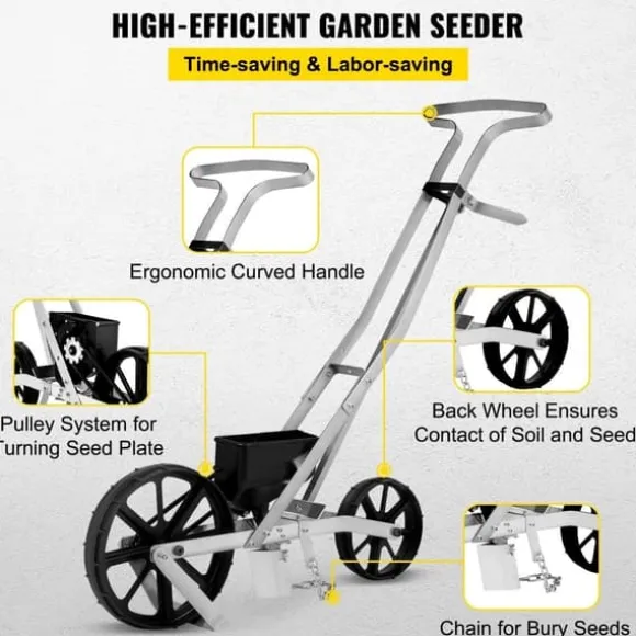 Hög effektivitet för trädgården – Med grävploggen, såplattan, blocksystemet, metallkedjan och det breda bakhjulet kan vår trädgårds-såmaskin hjälpa dig att utföra plantering effektivt.