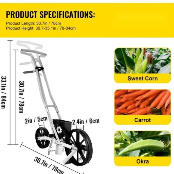 BRED ANVÄNDNING – Denna såmaskin är lämplig för dina foderställen och trädgårdar. Den anses vara en oumbärlig hjälpare för sådd av majs, purjolök, rädisa, morötter, bönor, ärtor, betor, sallad, sparris, kål, lök, tomater och andra frön.