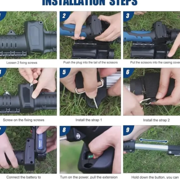- förlängd räckvidd: nå enkelt höga grenar med den medföljande förlängningsstången, vilket eliminerar behovet av en stege.