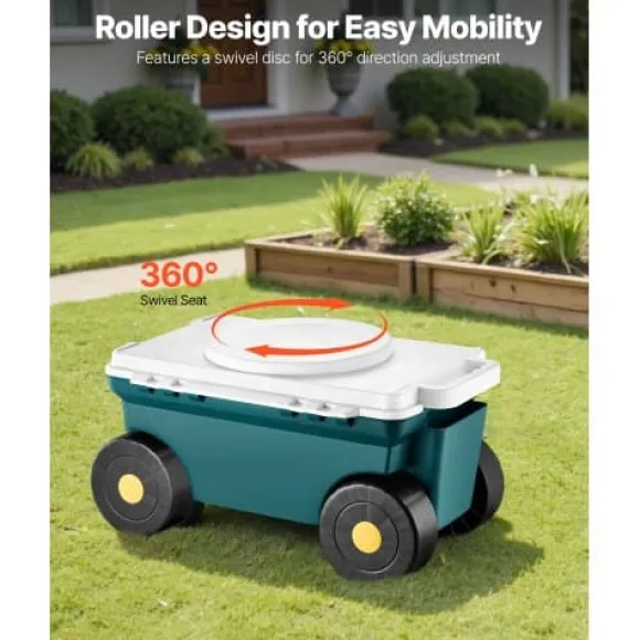 Denna 2-i-1 rullande trädgårdsscooter med säte erbjuder en bekväm och praktisk lösning för trädgårdsarbete, vilket gör att du kan utföra lågt liggande uppgifter som plantering och ogräsrensning utan att belasta rygg eller knän. Den lätta designen, det rymliga förvaringsutrymmet och den robusta konstruktionen gör den idealisk för både inomhus- och utomhusarbete. De stora hjulen och det inbyggda handtaget säkerställer enkel manövrering över olika underlag.