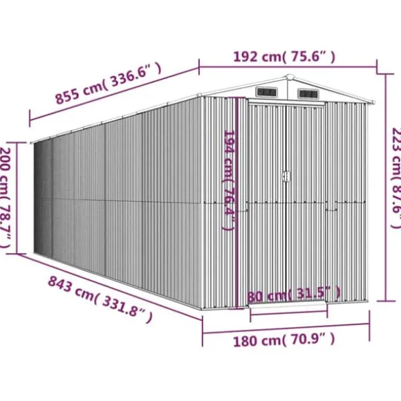 - Slitstarkt material: Trädgårdsskjulet är tillverkat av galvaniserat stål, vilket är hållbart och inte korroderar eller påverkas av ogynnsamma väderförhållanden.