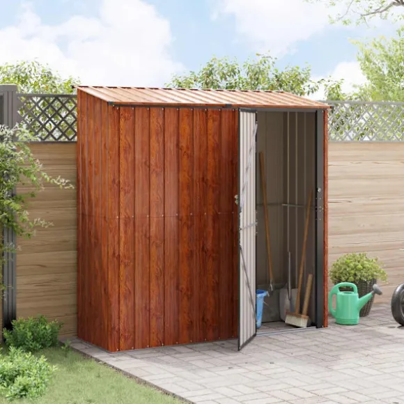 - Effektiv vattenavrinning Designen med sluttande tak gör att regnvattnet rinner av ordentligt, så du slipper vattenpölar inuti skjulet. Ditt innehåll hålls alltså torrt och tryggt.