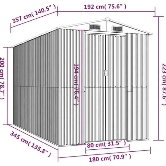 - Slitstarkt material: Trädgårdsskjulet är tillverkat av galvaniserat stål, vilket är hållbart och inte korroderar eller påverkas av ogynnsamma väderförhållanden.