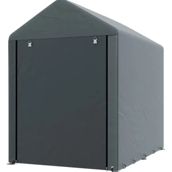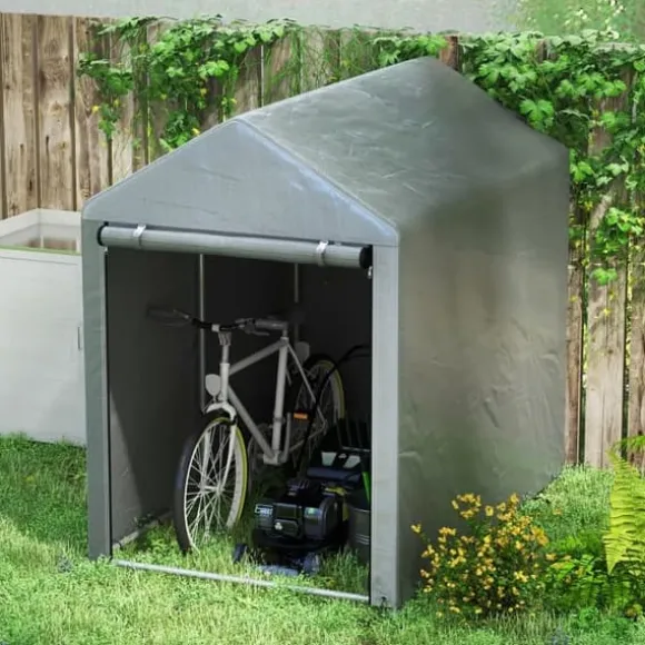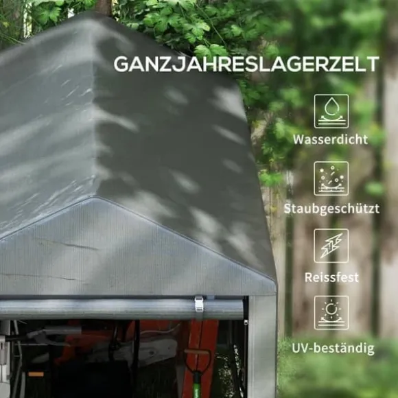 – Enkel åtkomst: Utrustad med en stor dörr med dragkedja gör detta utomhusskjul det enkelt att komma åt och förvara din utomhusutrustning på ett säkert sätt.