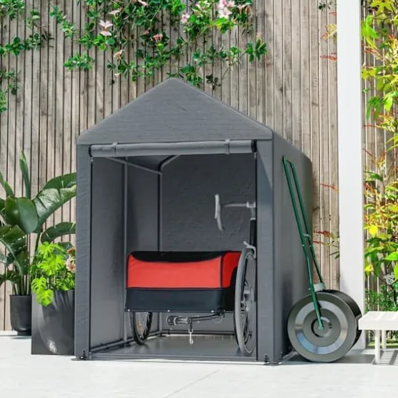 – Rymlig förvaringslösning: Oavsett om det är som trädgårdsskjul eller cykelskjul, erbjuder detta redskapsskjul tillräckligt med utrymme för två cyklar, en motorcykel eller trädgårdsredskap.