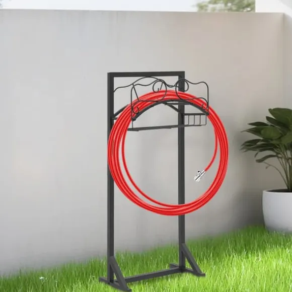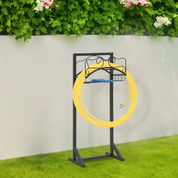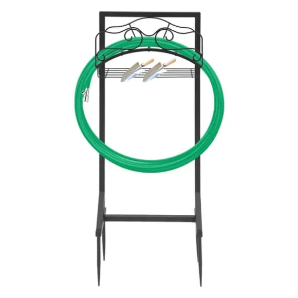 Stilren ordning för trädgårdsslangenDenna moderna slanghållare i robust järn håller slangen prydligt upprullad och redo. Den svarta, markmonterade designen passar i trädgård, bakgård, gräsmatta, uteplats och köksträdgård – mindre trassel, mer tid för odling.