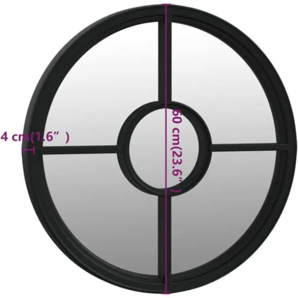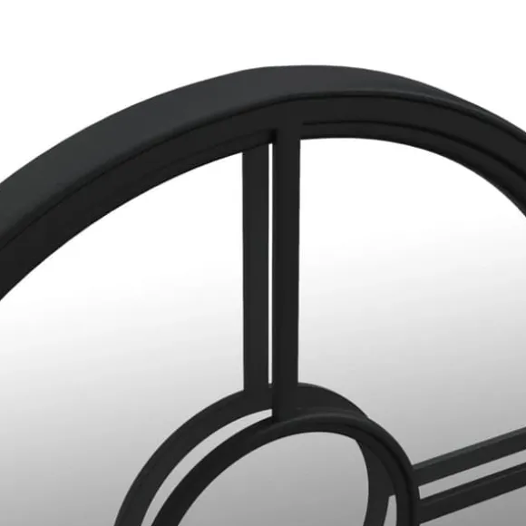 Spegelramen är tillverkad av järn, vilket gör den hållbar och stabil. Den kan användas för att framhäva en trädgårdsdetalj genom att reflektera den i spegeln, eller använda den för att kasta ljus i ett mörkt hörn. En spegel i trädgården är ett kreativt sätt att förhöja utseendet, och få trädgården att se större ut. Tack vare det förborrade hålet på toppen kan den dekorativa spegeln enkelt monteras på väggen.