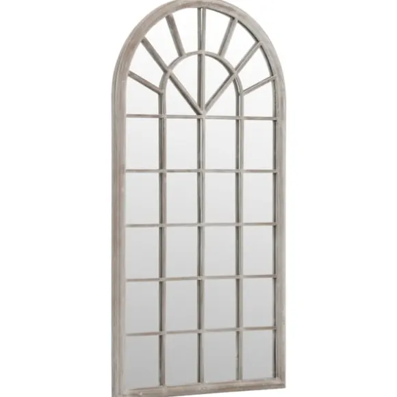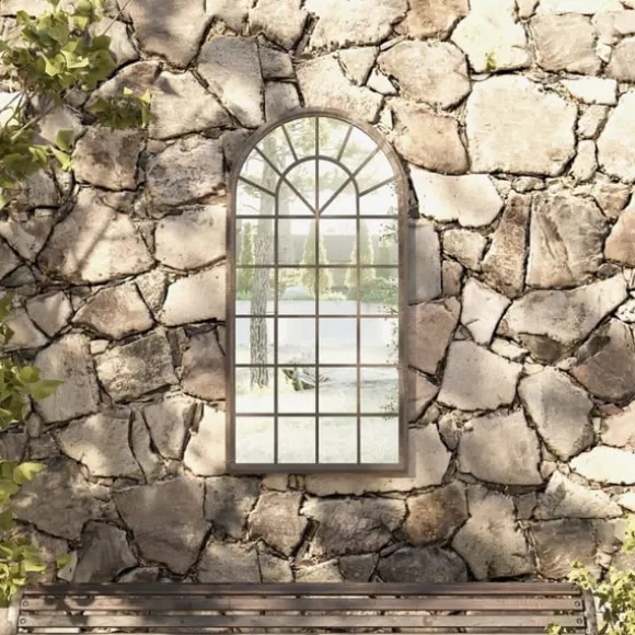Spegeln är gjord av slitstarkt järn med rosteffekt, vilket resulterar i ett antik utseende. Den kan användas för att framhäva en egenskap genom att reflektera den i spegeln, eller använda den för att avleda ljus i ett mörkt hörn. En spegel i trädgården är ett kreativt sätt att förhöja utseendet, och få trädgården att se större ut. Tack vare det förborrade hålet på toppen kan den dekorativa spegeln enkelt monteras på väggen.