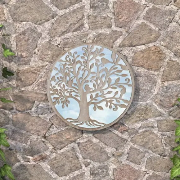 Spegelramen är tillverkad av järn, vilket gör den hållbar och stabil. Den dekorativa träddesignen gör den lämplig för utomhusbruk. Den kan användas för att framhäva en trädgårdsdetalj genom att reflektera den i spegeln, eller använda den för att kasta ljus i ett mörkt hörn. En spegel i trädgården är ett kreativt sätt att förhöja utseendet, och få trädgården att se större ut. Tack vare det förborrade hålet på toppen kan den dekorativa spegeln enkelt monteras på väggen.