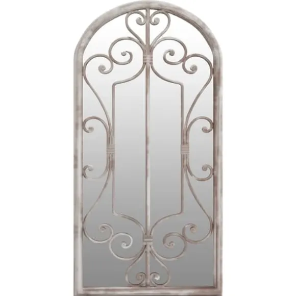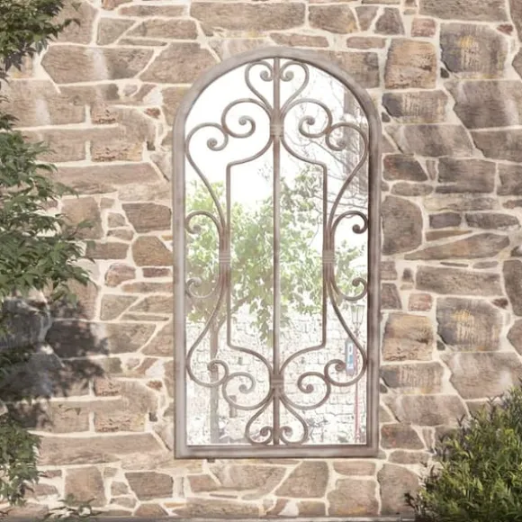 Spegeln är gjord av slitstarkt järn med rosteffekt, som utstrålar en antik känsla. Den kan användas för att framhäva en trädgårdsdetalj genom att reflektera den i spegeln, eller använda den för att kasta ljus i ett mörkt hörn. En spegel i trädgården är ett kreativt sätt att förhöja utseendet, och få trädgården att se större ut. Tack vare det förborrade hålet på toppen kan den dekorativa spegeln enkelt monteras på väggen.