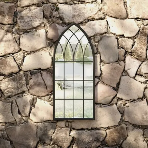 Spegeln är gjord av slitstarkt järn med rosteffekt, vilket resulterar i ett antik utseende. Den kan användas för att framhäva en egenskap genom att reflektera den i spegeln, eller använda den för att avleda ljus i ett mörkt hörn. En spegel i trädgården är ett kreativt sätt att förhöja utseendet, och få trädgården att se större ut. Tack vare det förborrade hålet på toppen kan den dekorativa spegeln enkelt monteras på väggen.