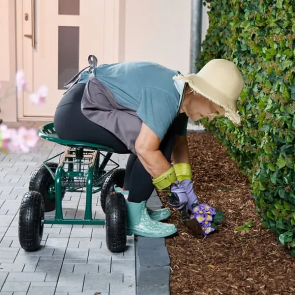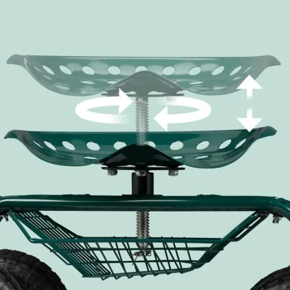 Denna mobila trädgårdsstol erbjuder bekväm sittplats vid arbete utomhus och minskar belastningen på rygg och knän. Den justerbara sitthöjden, den robusta stålramen och de pneumatiska hjulen gör den till ett mångsidigt och stabilt hjälpmedel för trädgårdsarbete som ogräsrensning och skörd. Det integrerade förvaringsutrymmet håller dina verktyg och tillbehör inom räckhåll.