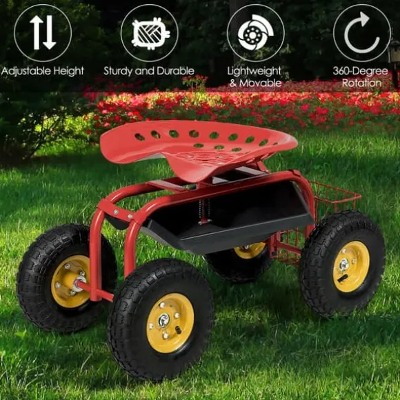 - Multifunktionell & enkla installationssteg: vagnen kan användas i din trädgård för att ta hand om dina växter, men du kan också tvätta eller reparera din bil med vagnen. När den inte används kan den användas som förvaringsvagn. Det är enkelt att montera eller demontera den rullande vagnen enligt anvisningarna.